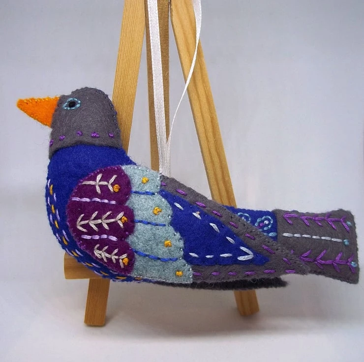 Lovingly hand stitched and embroidered felt ornament with narrow satin hanging loop would look great adorning the Christmas tree or anywhere as part of your festive display also idea as a present for the person who is always on the lookout for something different. Each ornament is lightly stuffed to give shape.