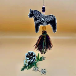 Swedish Dala Horse Christmas Decoration With Hanging Tassel And Special Beads .
