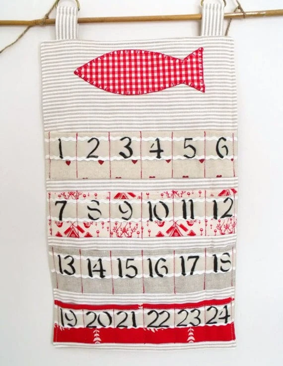 Cat Hanging Christmas Advent Calendar For Storing Small Gifts Or Treats In