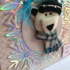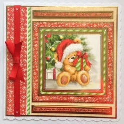The tree and gingerbread house cards measure 21cm high and 10cm wide, and the wreath and stocking ones measure 13.5cm square. They all come with white envelopes and in cellophane bags for protection. Inside they’re blank for your own message.
