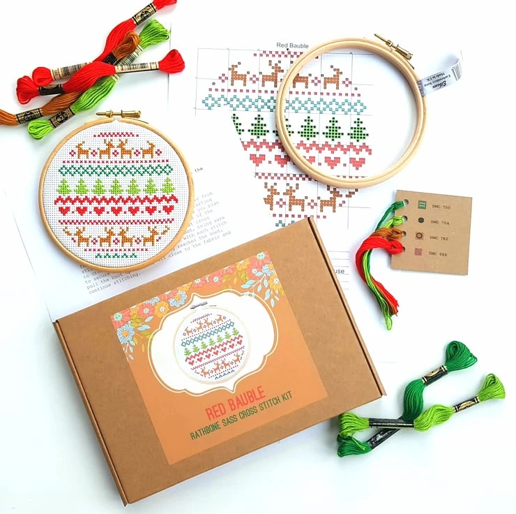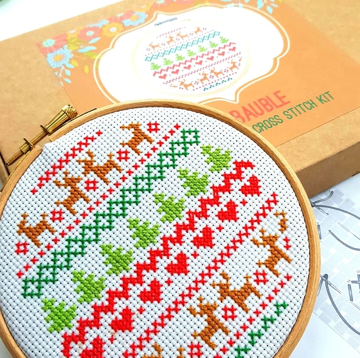 A complete cross stitch kit to sew your own Christmas Fair Isle design – perfect for yourself or as a gift.