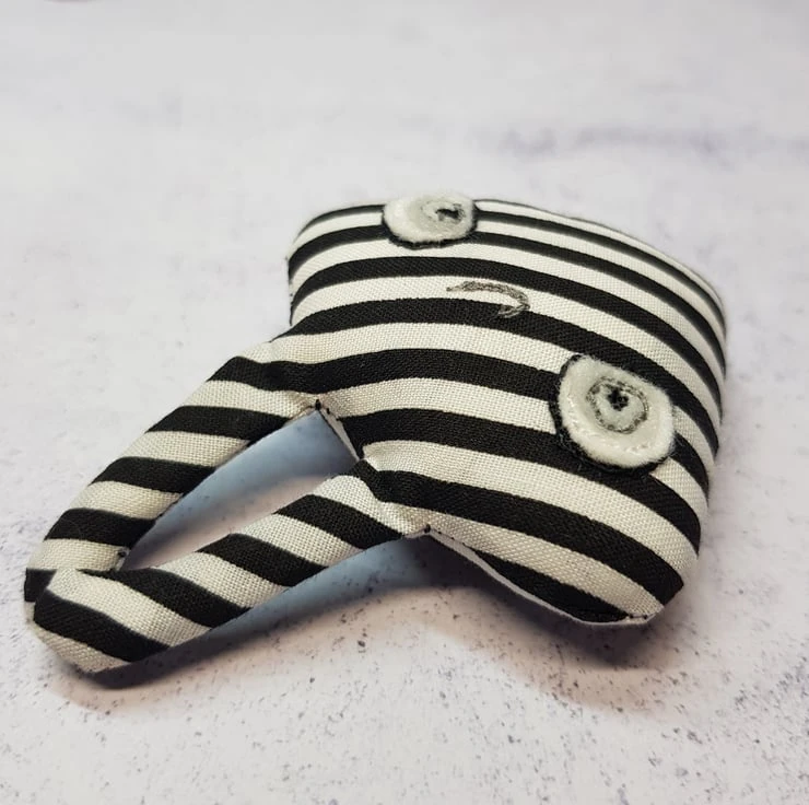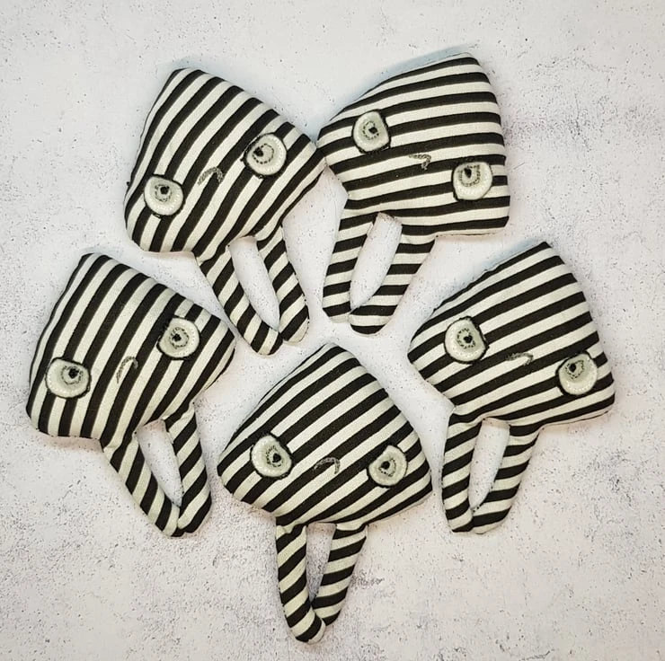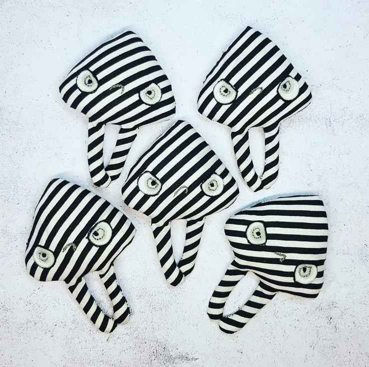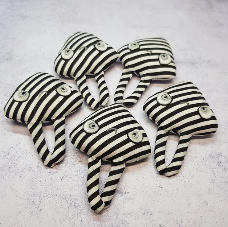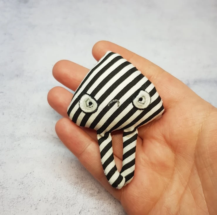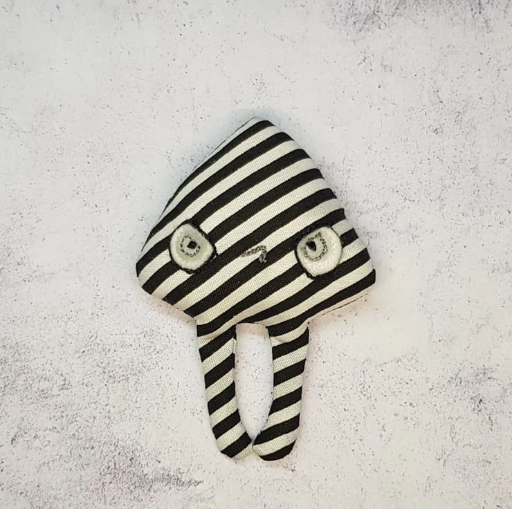 Grumpy christmas treat decoration with free motion embroidered face on felt and little dangly legs. This listing is for one Humbug only. Humbug comes with transparent loop hanger. Optional sparkly black hanger available when ordering. Please be aware this item may not arrive in time for Christmas due to the postal strikes, but fingers crossed.