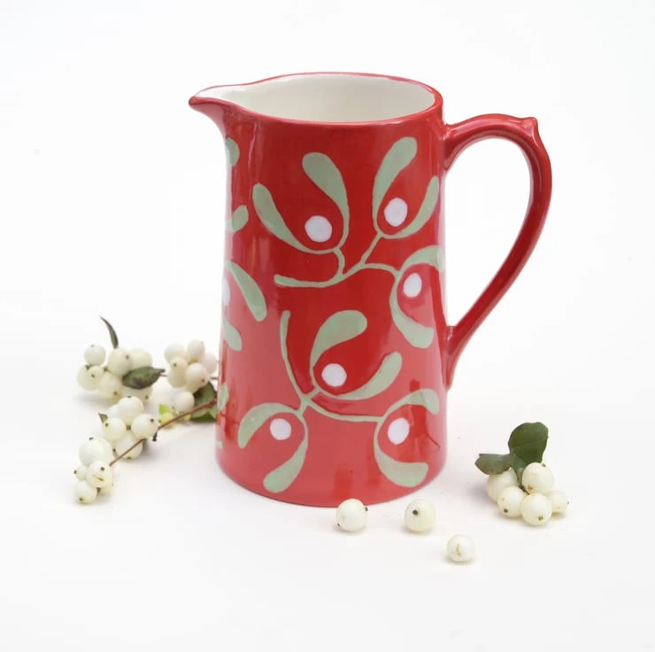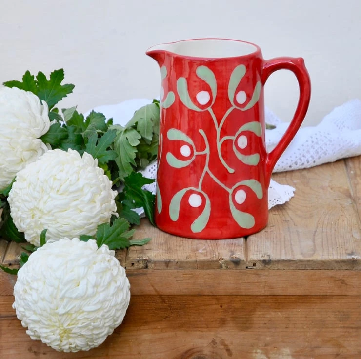 This hand painted Red Mistletoe Farmhouse Jug would look fabulous on your Christmas table, perfect for water, brandy sauce or as a vase for a small posy of flowers.