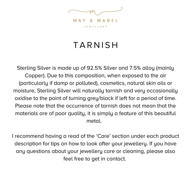 925 Sterling Silver is made up of 92.5% silver and 7.5% copper and it can naturally tarnish over time.