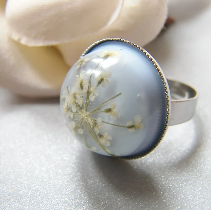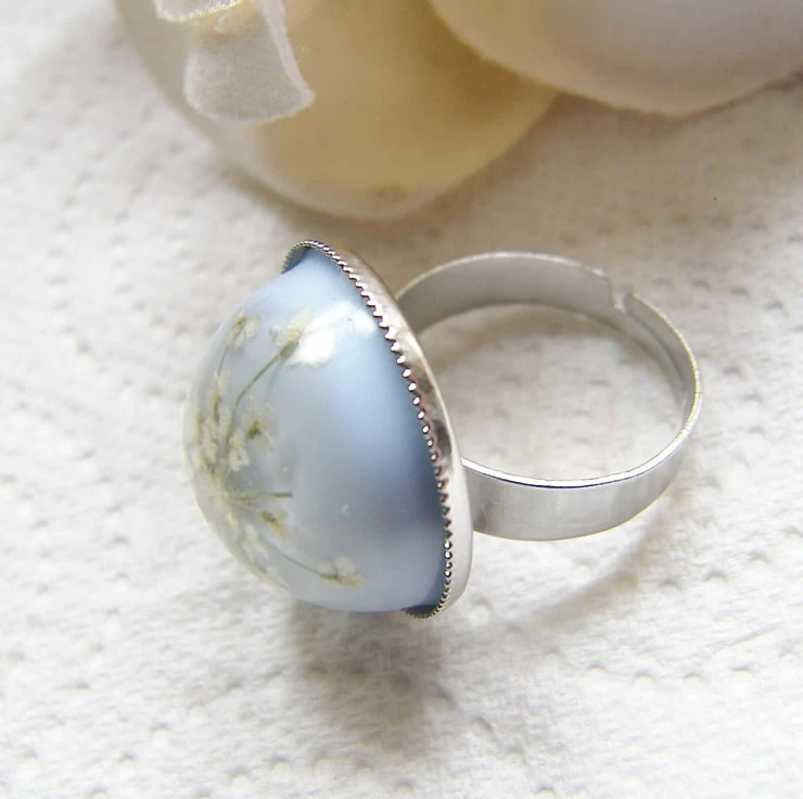 Real Queen Anne’s Lace Flower Blue Ring – SNOWFLAKE