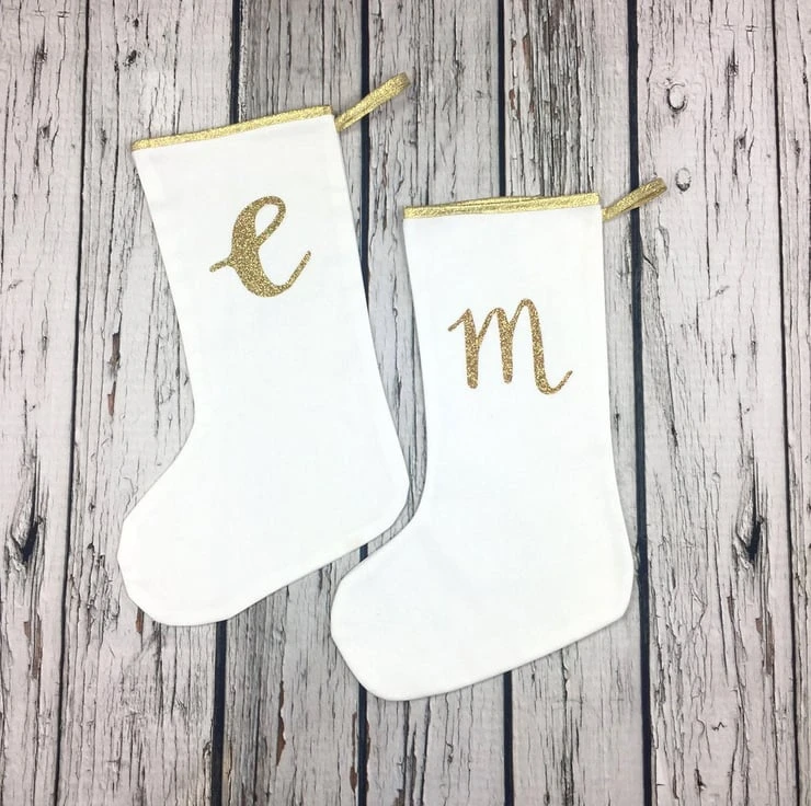 These stockings feature one glittery letter only, but we have another listing if you’d like your full name in glitz:
