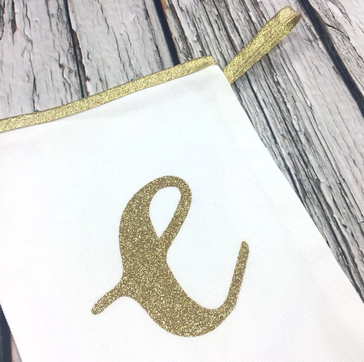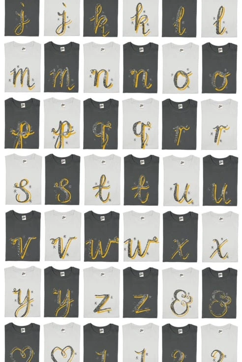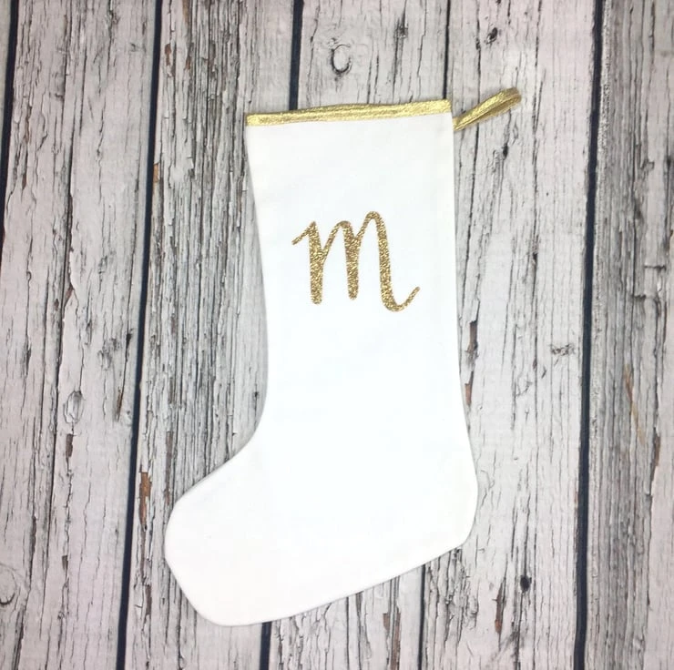 This white stocking features our Monroe font in gold glitter, simple glitz for Christmas magic! Check out the full alphabet to see how the letter shape will look (our Monroe T-shirts features two colours). Pick your choice of letter, number or heart symbol…