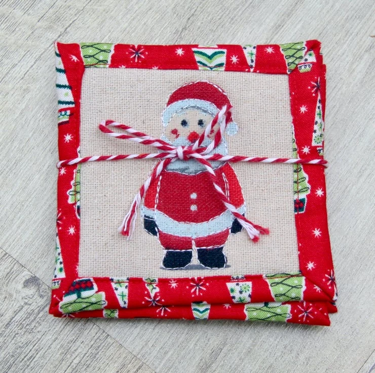 This set of four quilted coasters has a jolly Santa, some cool Christmas Trees and festive Snowflake designs, perfect for adding some Christmas cheer to your drinks!