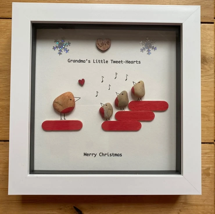 A lovely handmade pebble frame to offer Grandma for Christmas.