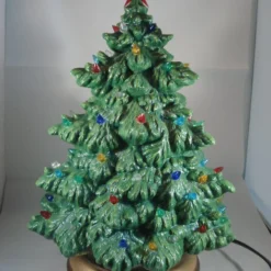 I have for sale a ceramic Christmas table lamp, which was hand painted by myself. It is a green, glittery Christmas tree, which has numerous small light, in a variety of different colours and a star on the top. The gold and brown glittery base, is completely separate and contains the electrics. Included in the sale is a free small G9 LED bulb. Also, the coloured star on the top of the tree, will be removed when packaged up, this will make it easier for storage when not in use. This would make a lovely addition to anyone’s Christmas decorations, or perhaps given as a gift.