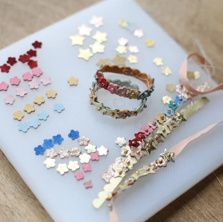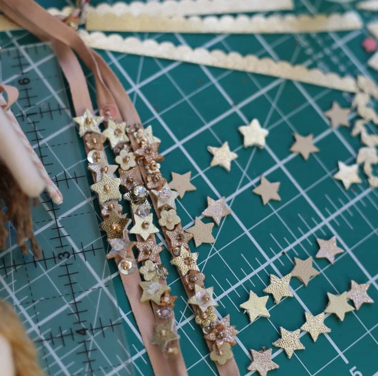 Her outfit will be a tiny removeable dress made from silk and tulle with detachable sequin wings. She will wear a sash and crown made from tiny hand punched leather stars, each attached with a golden bead.