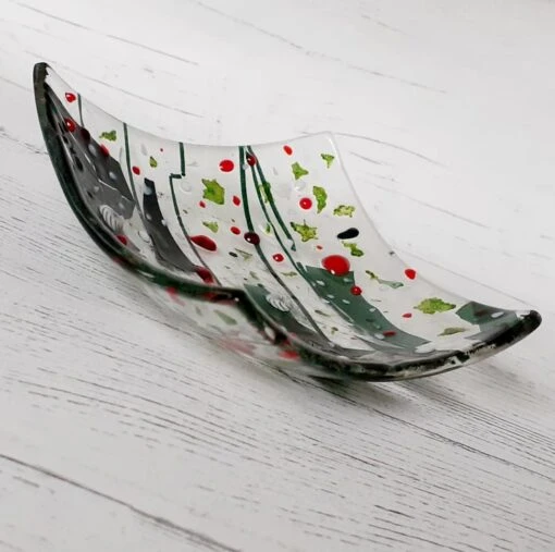 Fused Glass Christmas-themed Tealight Holder, Trinket Or Bonbon Dish