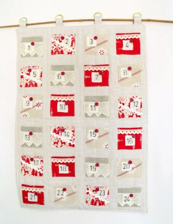 Large Vintage Style Hanging Christmas Advent Calendar, 20 X 29 Inches