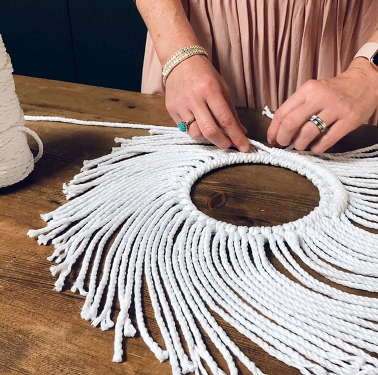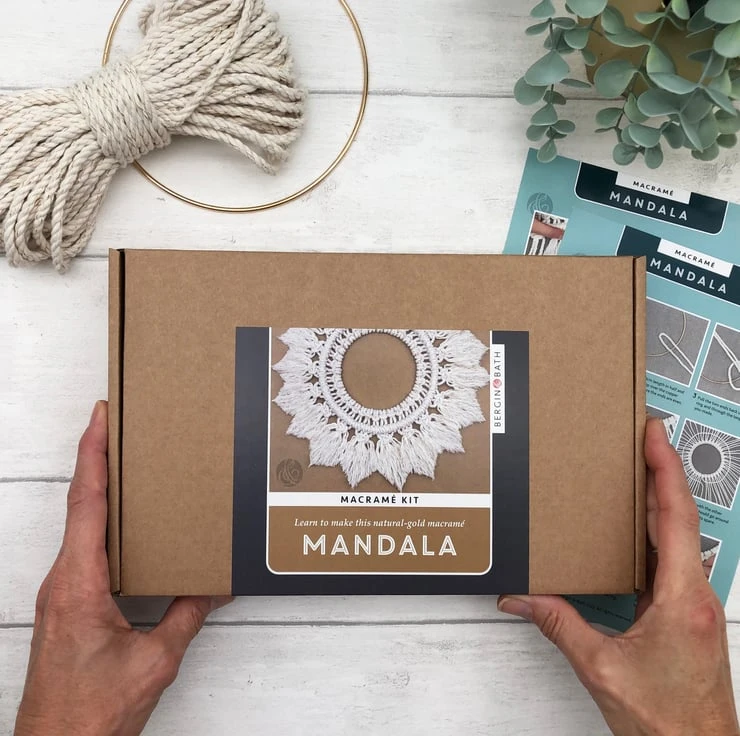 Make your own DIY macrame mandala wall hanging with this beginners textile craft kit for adults and discover the art of knotting.