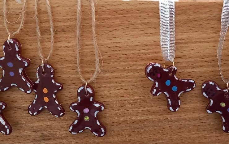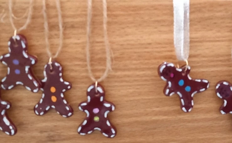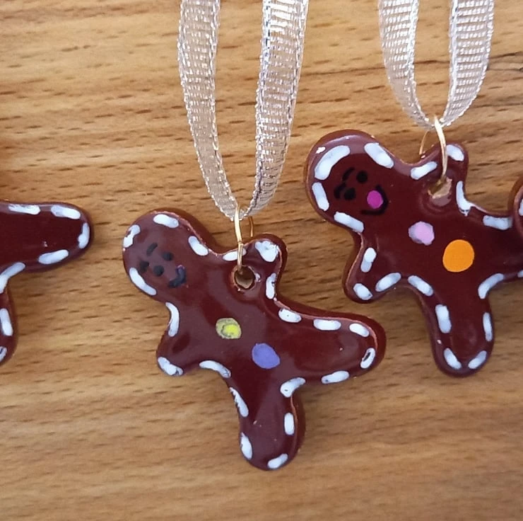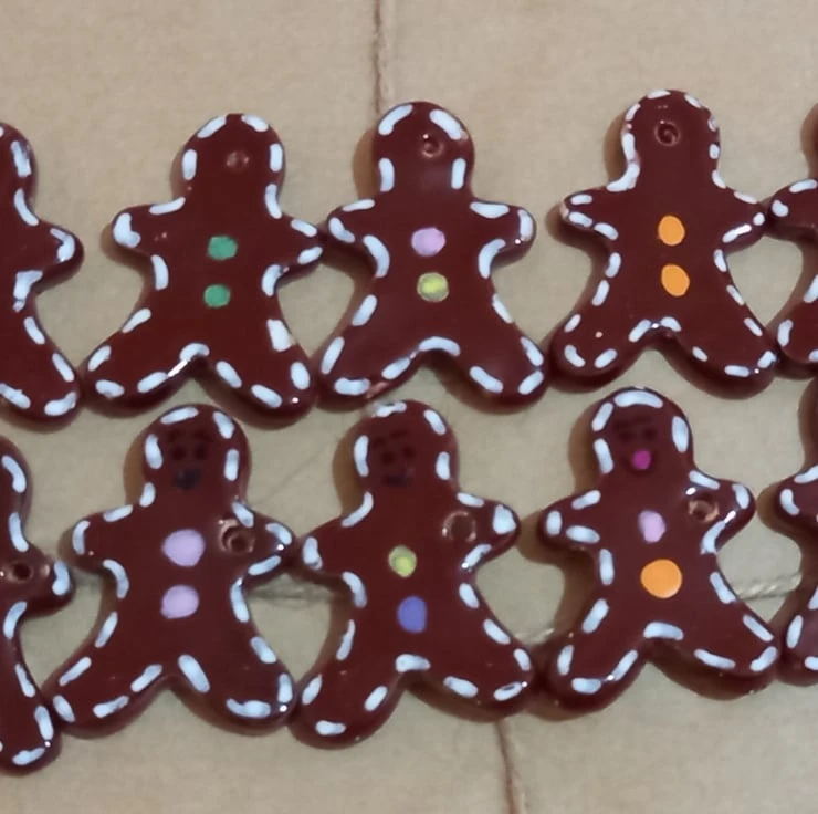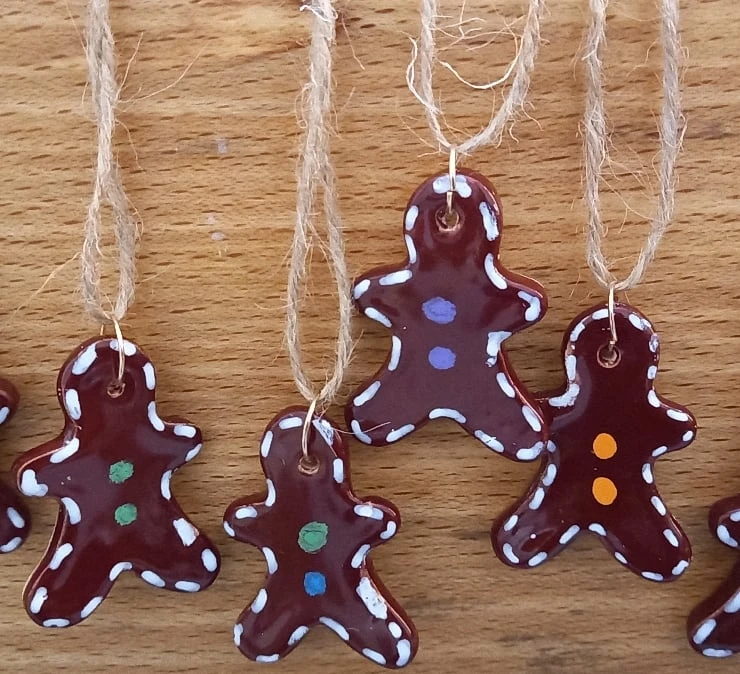 Cute mini ceramic gingerbread men made from earthenware clay hand cut bisque fired hand glazed and refired to 1100°c . I’ve attached copper jump rings so they can dangle nicely on your tree or as a little decoration to your gifts. They can also be added to wreaths,garlands and lots more Christmas decorations, or addition to table settings.