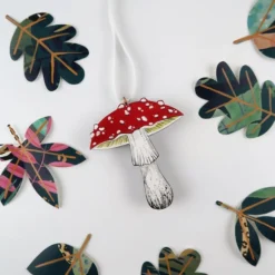 Beautiful wooden MUSHROOM Christmas tree hanging decoration.