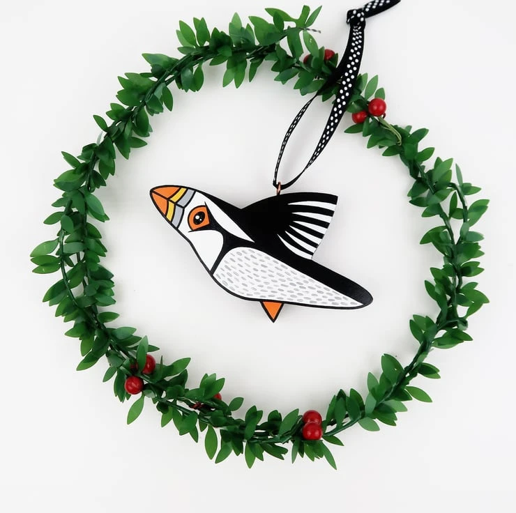 Beautiful wooden PUFFIN Christmas tree decoration.