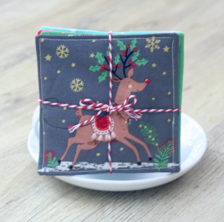 The coasters are approximately 12.5cm (5 inch) square and come as a set, beautifully tied with red and white twine to add even more festive joy.