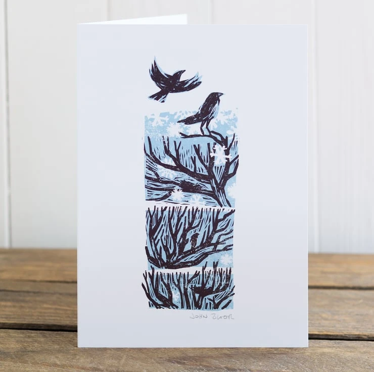 Winter Drifts cards, printed onto nice uncoated card with Kraft envelopes. A5 size. Set of all five designs: “Crows”, “Fox”, “Bear”, “Stag” and “Hare”. You will receive one of each design.