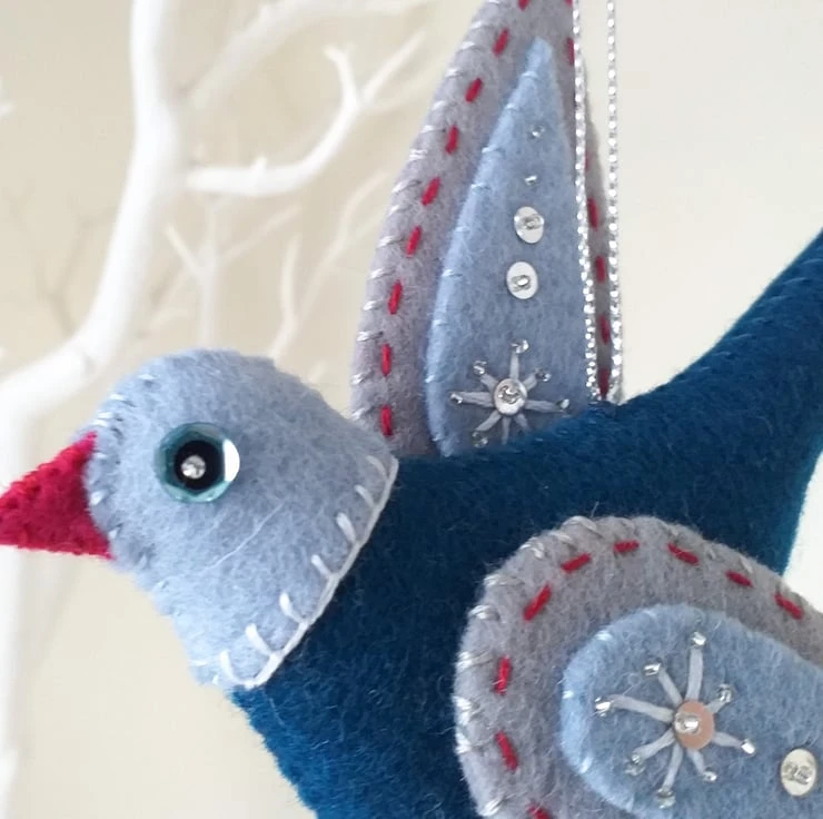 A beautiful felt snowbird from the wonderful pattern by mmmcrafts from The Twelve Days of Christmas ornaments range
